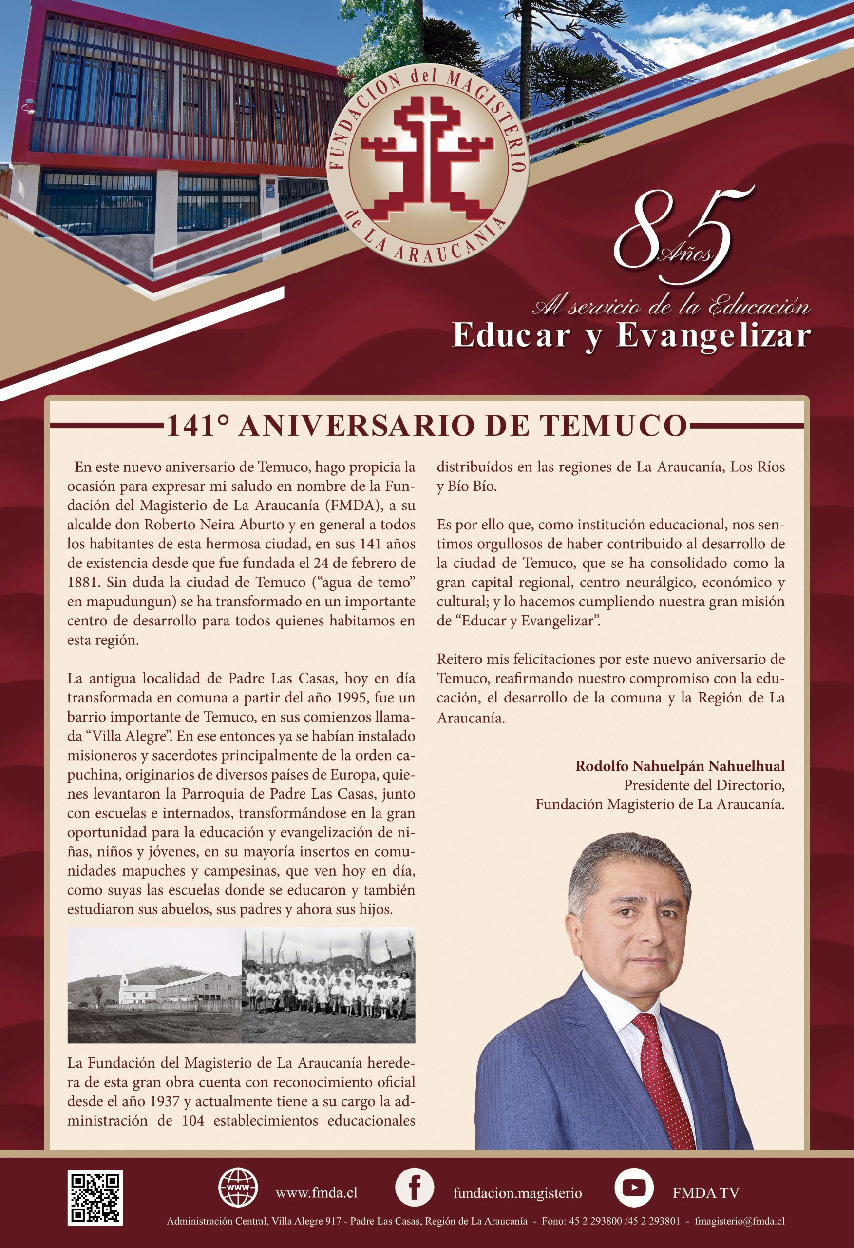 El pasado domingo 27 de febrero se publicó en el Diario Austral de Temuco un saludo del Presidente Rodolfo Nahuelpán Nahuelhual en nombre del Directorio y toda la Institución.